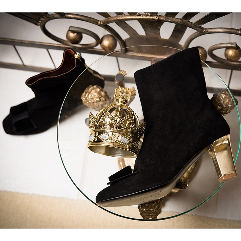 - Paris Black Suede Ankle Boot with Black Suede Bow