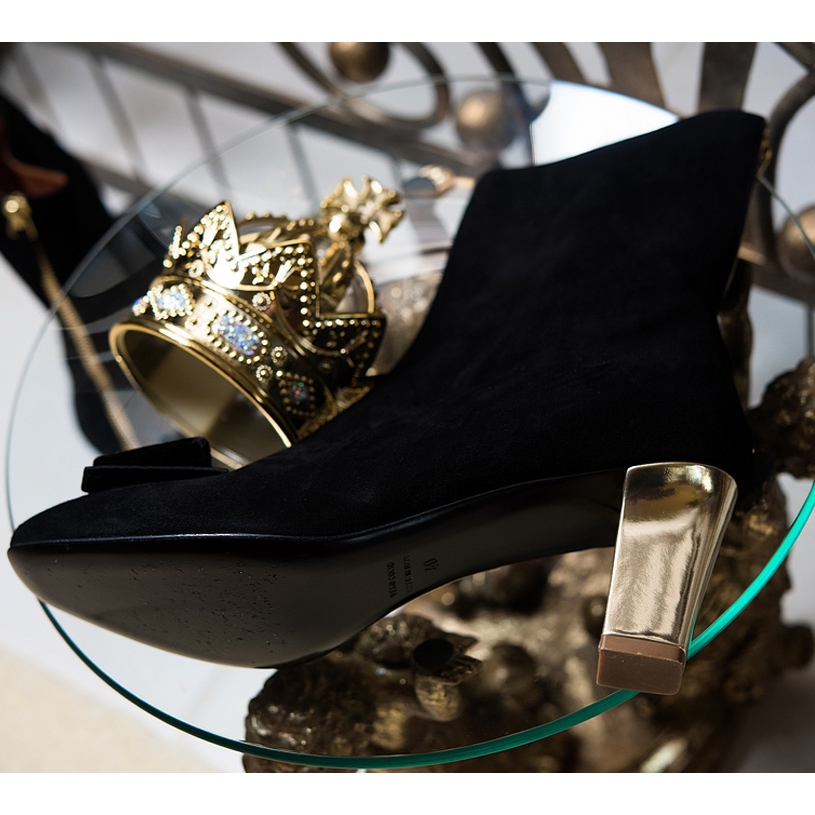 Product Code: Paris Black Suede Ankle Boot with Black Suede Bow